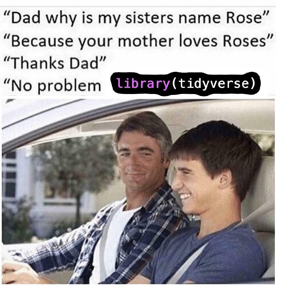 So my love for the tidyverse can be exemplified in the following meme:
