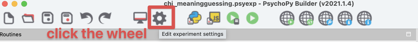 In the lower box, you can see the different “routines” that make up the experiment. For instance, here you have the instructions ‘instructPractice’, followed by the ‘trial’ and ‘feedback’, which are repeated in a loop. Then you have some new instructions ‘instruct’, followed by the “real experiment” ‘trial’ and a loop again. Finally, a few words of thanks for participating.