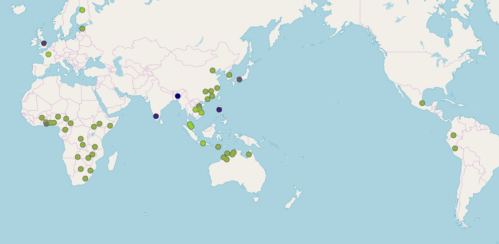 So with a simple script and some data we can use the lingtypology package to quickly map language-related data. We can see how ideophone is used more for African languages, expressive for Southeast Asian ones, and mimetic for Japanese. Of these ideophone is recently becoming the global cover term — although what that precisely means, often still has to be explained at the language-particular level. Cool!